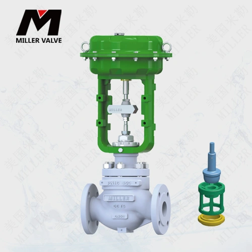 美國米勒氣動(dòng)薄膜調(diào)節(jié)閥是以壓縮空氣為動(dòng)力源,以薄膜式氣缸為執(zhí)行器,并借助于電氣閥門定位器、轉(zhuǎn)換器電磁閥、保位閥等附件去驅(qū)動(dòng)閥門,實(shí)現(xiàn)開關(guān)量或比例式調(diào)節(jié),接收工業(yè)自動(dòng)化控制系統(tǒng)的控制信號(hào)來完成調(diào)節(jié)管道介質(zhì)的:流量、壓力、溫度等各種工藝參數(shù)。氣動(dòng)調(diào)節(jié)閥的特點(diǎn)就是控制簡單,反應(yīng)快速,且本質(zhì)安全,不需另外再采取防爆措施。